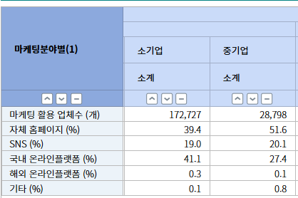 소기업은 39.4%, 중기업은 51.6%가 자체 홈페이지를 운영하고 있습니다