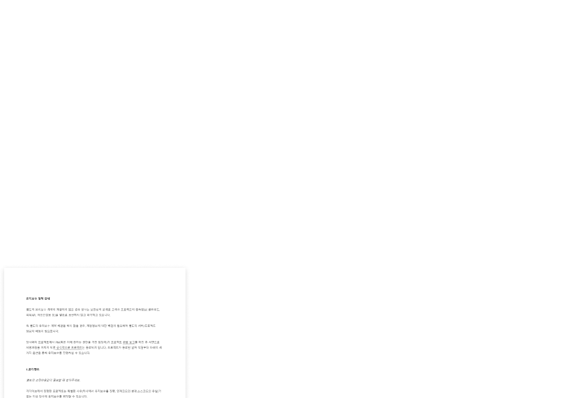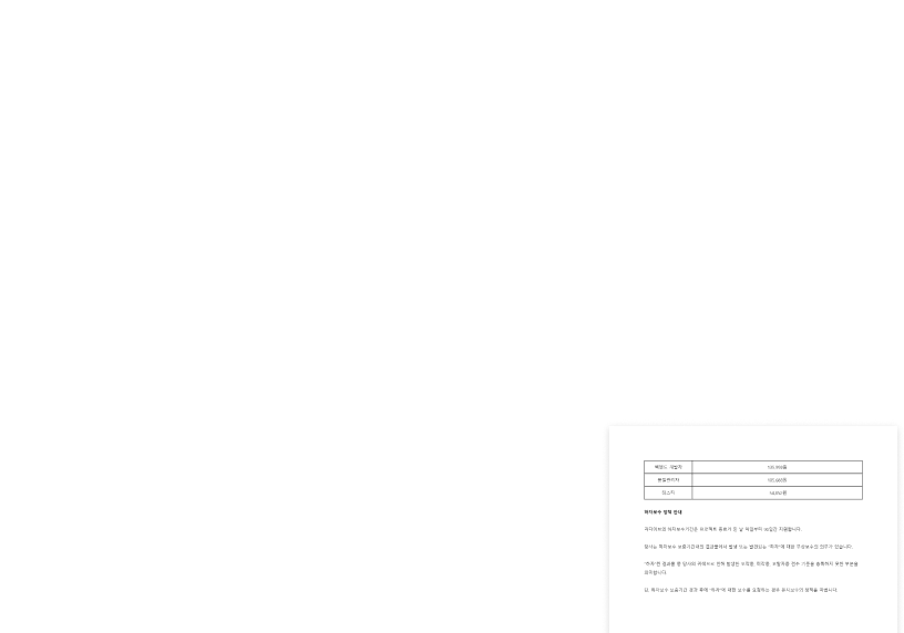 인력 부족으로 인한 일정 지연이나 품질 저하 없이, 철저한 프로세스 관리로 고객의 기대를 뛰어넘는 결과물을 제공합니다.