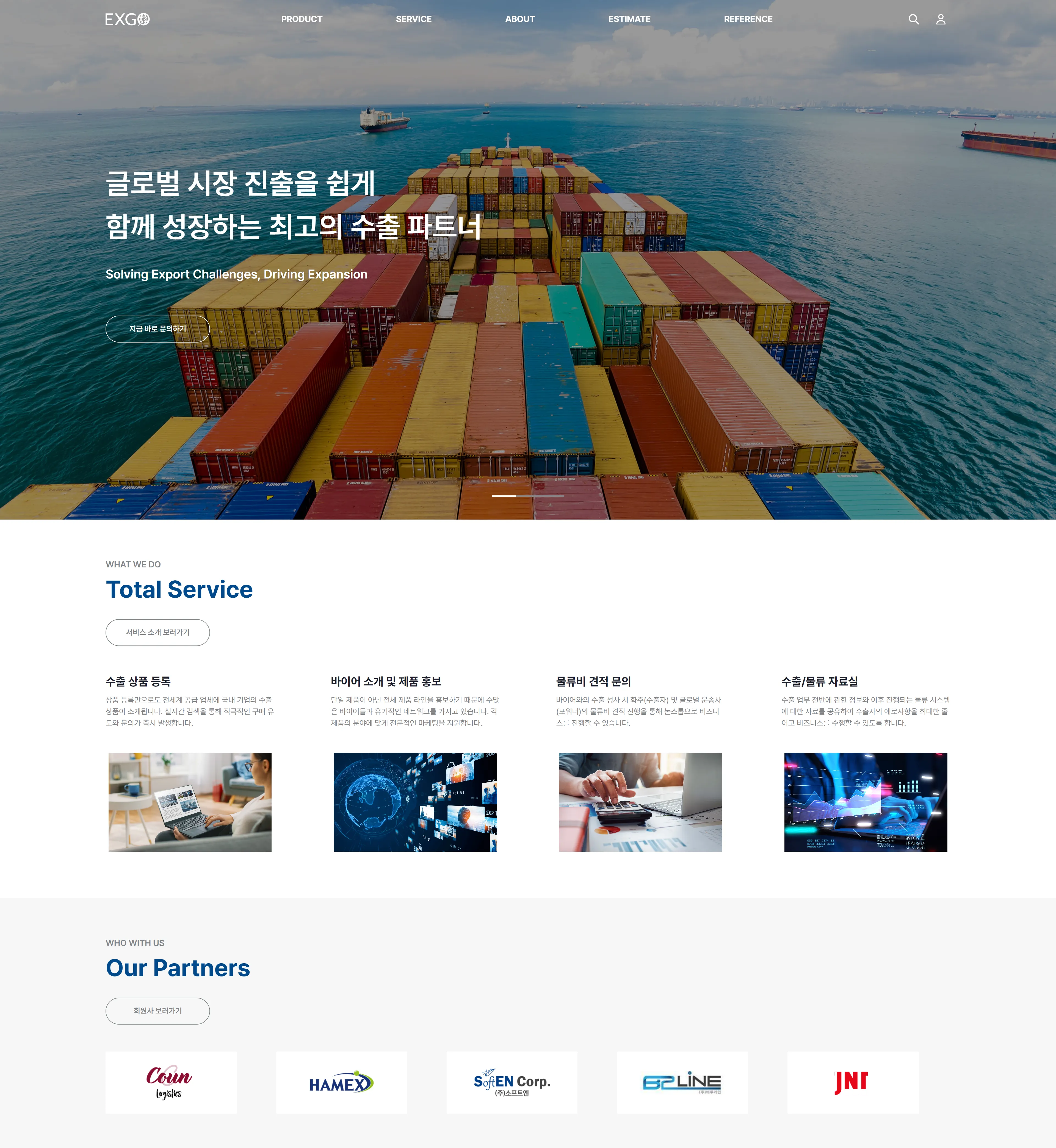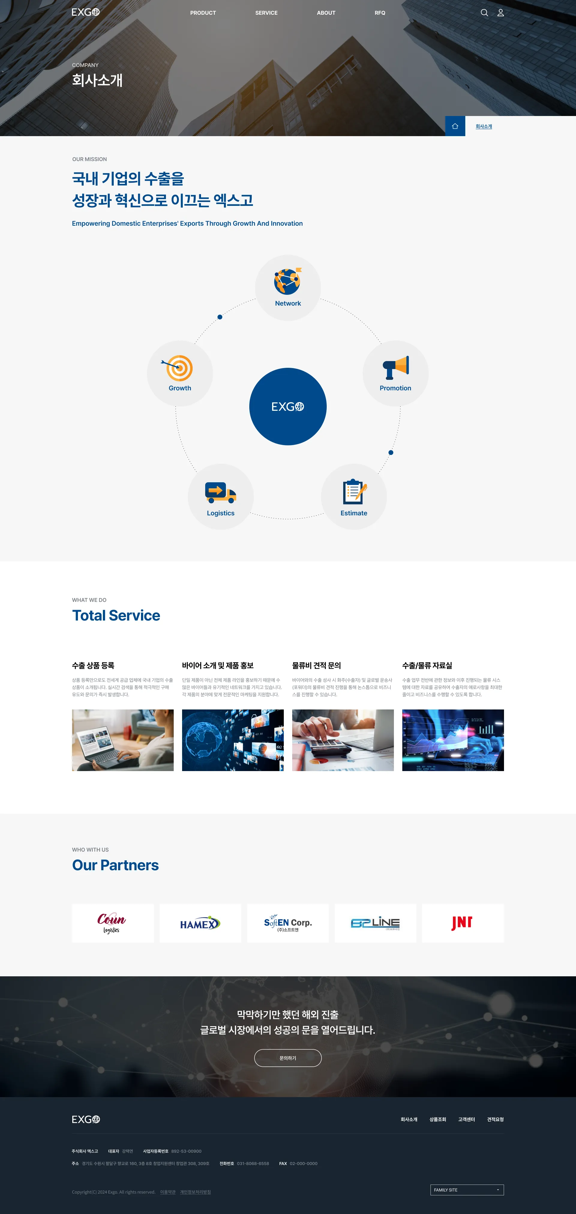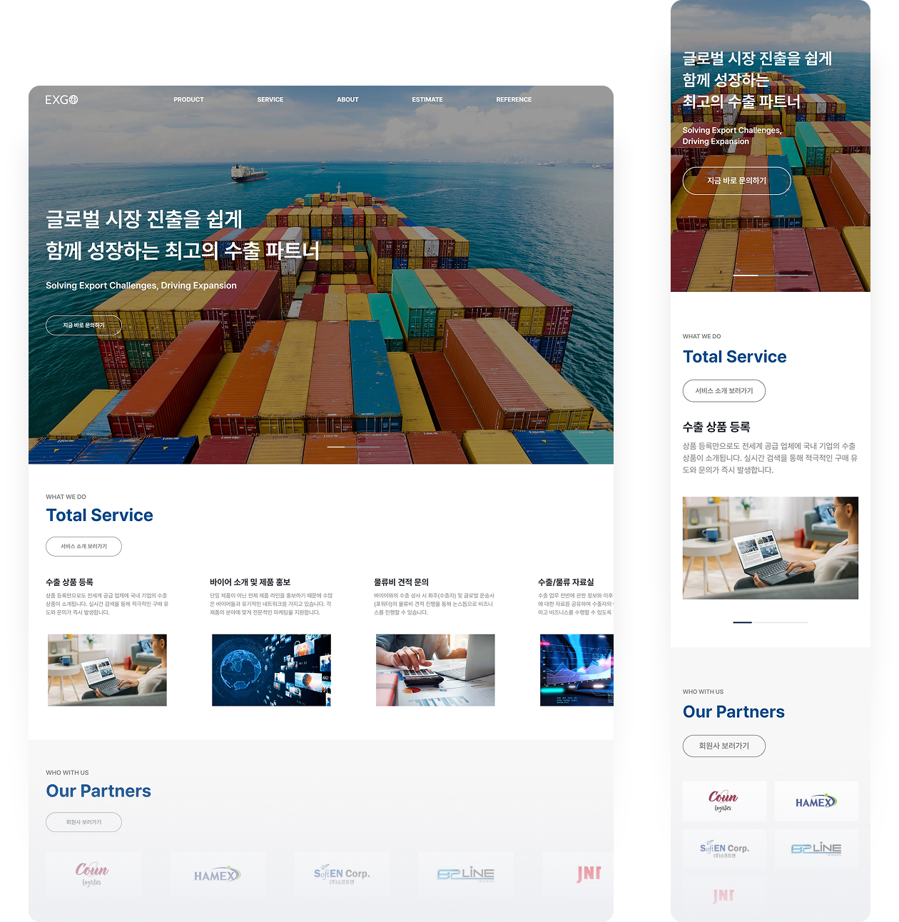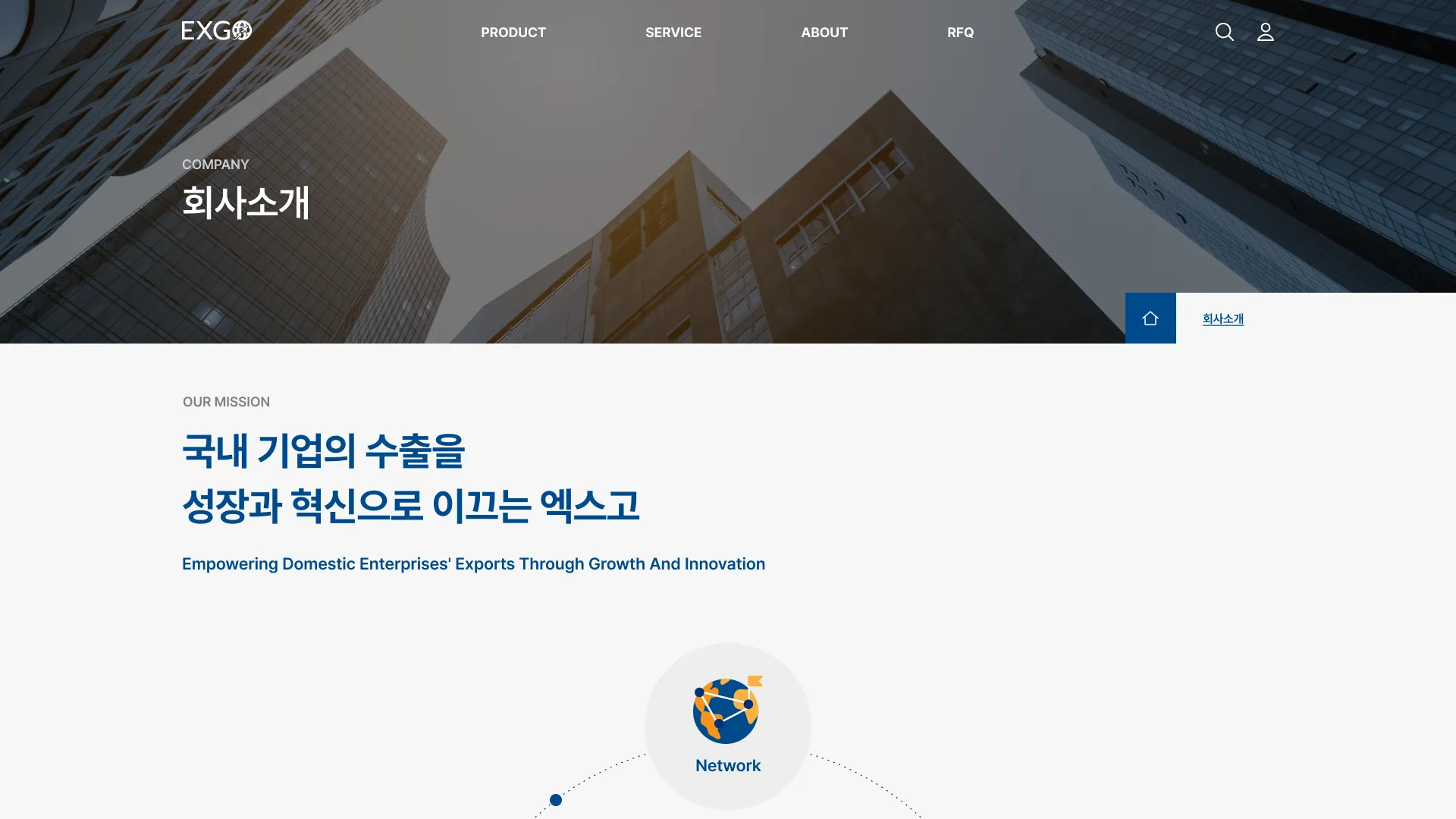 함께 성장하는 최고의 수출 파트너 엑스고 홈페이지 개발
