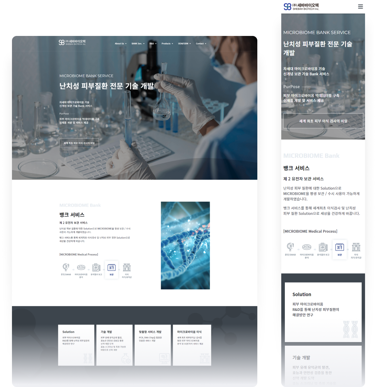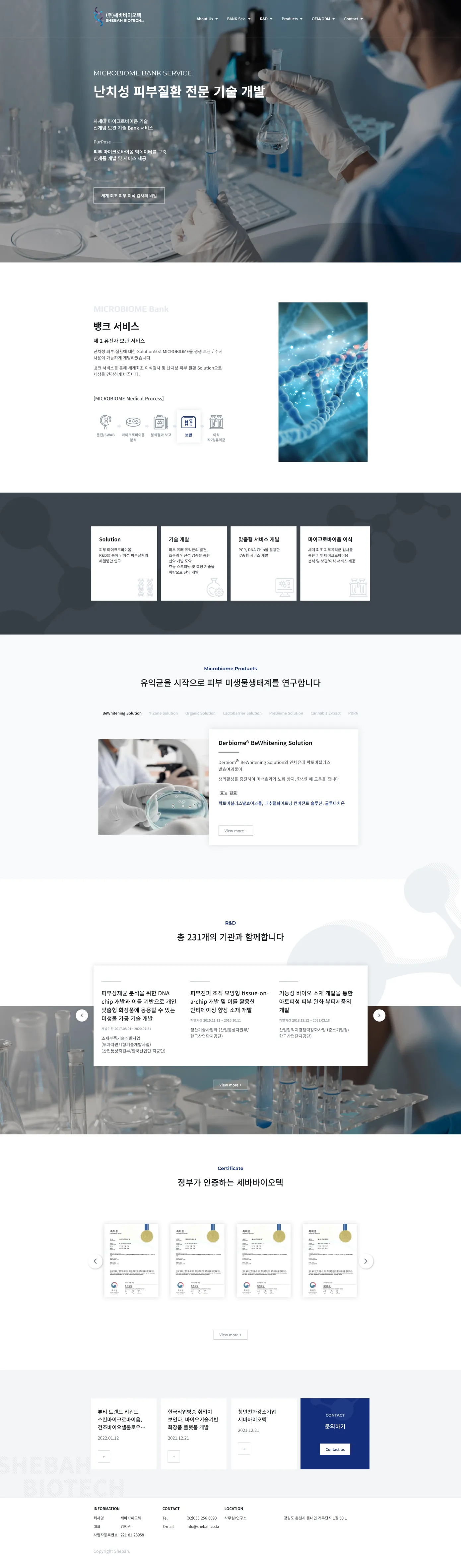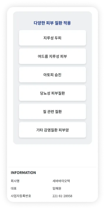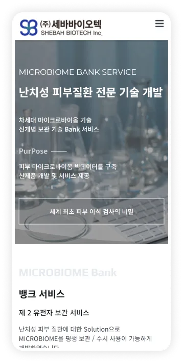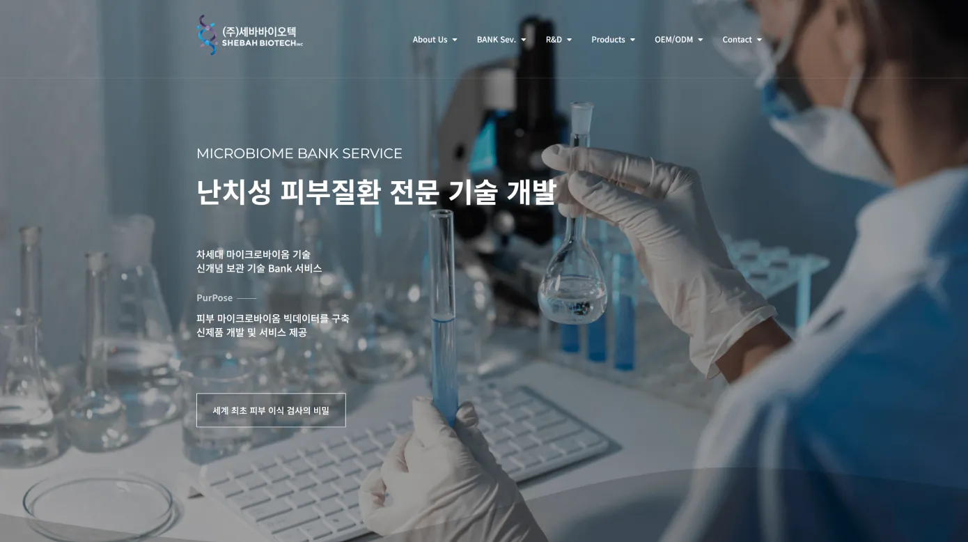 난치성 피부질환 연구 기업 세바바이오텍 홈페이지 리뉴얼