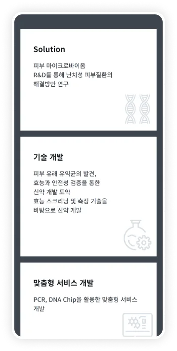 세바바이오텍의 홈페이지 리뉴얼 목표는 “브랜드 이미지 재구축”이었습니다. 기존 홈페이지는 화장품 브랜드로 포커싱 되어 있어 세바바이오텍만의 전문성이 느껴지지 않았습니다. 최첨단 바이오 기술을 보유한 기업의 이미지를 전달하기 위해 연구소 이미지로 리브랜딩 하였습니다. 또한 세바바이오텍만을 위한 맞춤형 UX/UI 디자인과 마이크로 인터렉션을 적용하였습니다.
