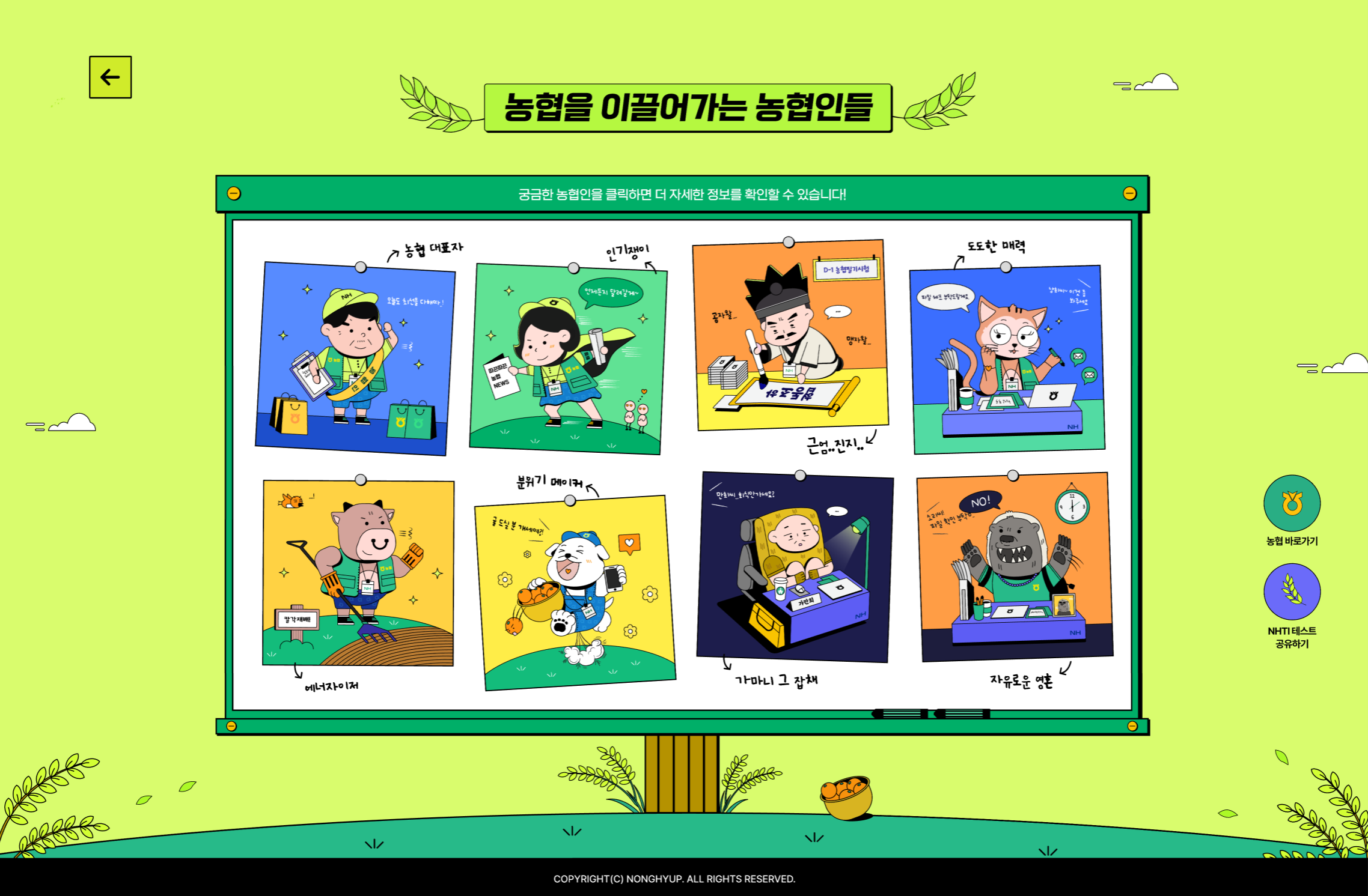 농협중앙회의 아이덴티티를 담은 개성있는 일러스트와 아이콘을 제작하였습니다.